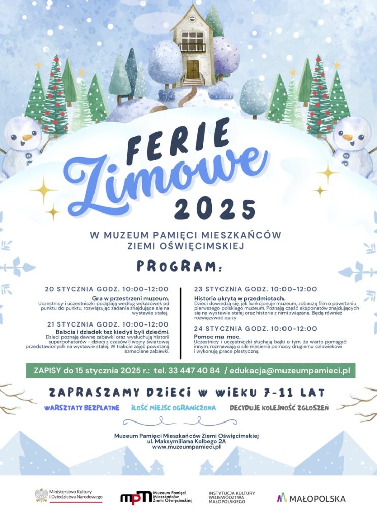 Zapraszamy dzieci w wieku 7-11 lat na wyjątkowe warsztaty w dniach 20-24 stycznia 2025 r.! Każdy dzień to nowa przygoda pełna nauki, zabawy i kreatywności! Sprawdź plan i spędź z nami ferie zimowe.